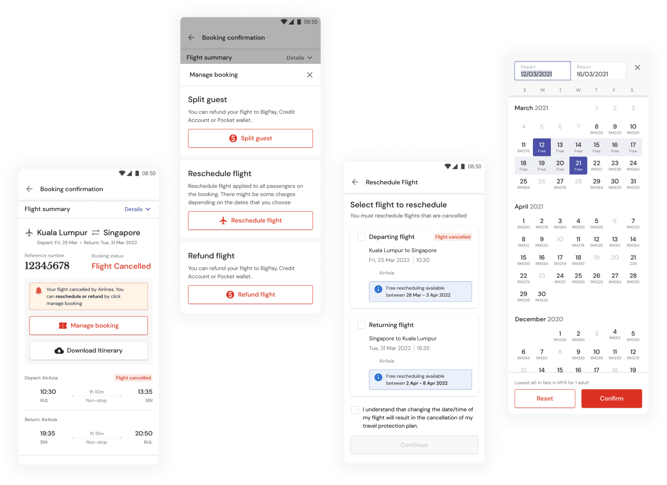 For this project I had to work with two product managers, one from reschedule team and one from refund team. Both of them had different goal in mind but, fortunately, still aligned. That’s why my design manager thought it was a good idea to solve them together.