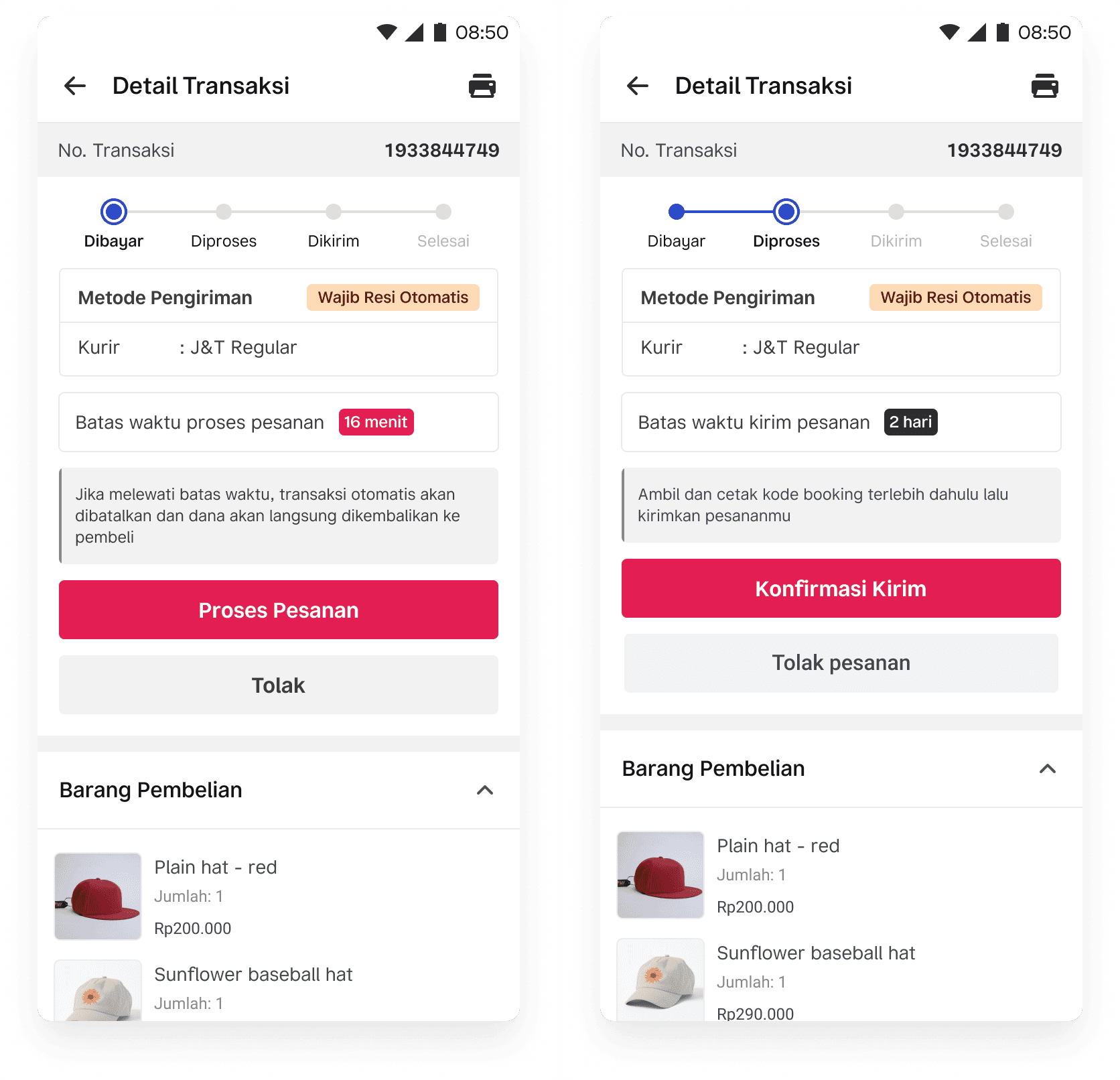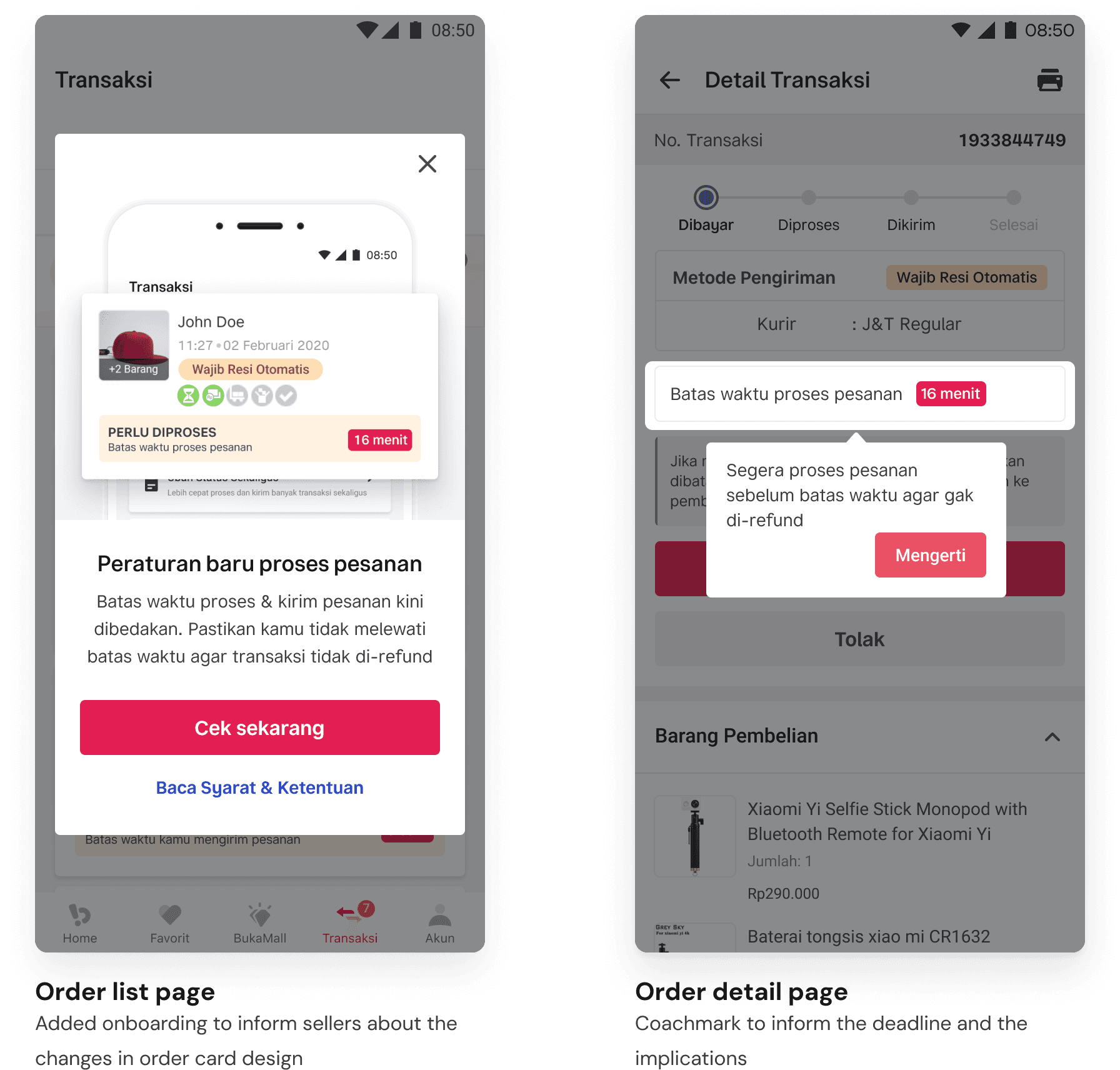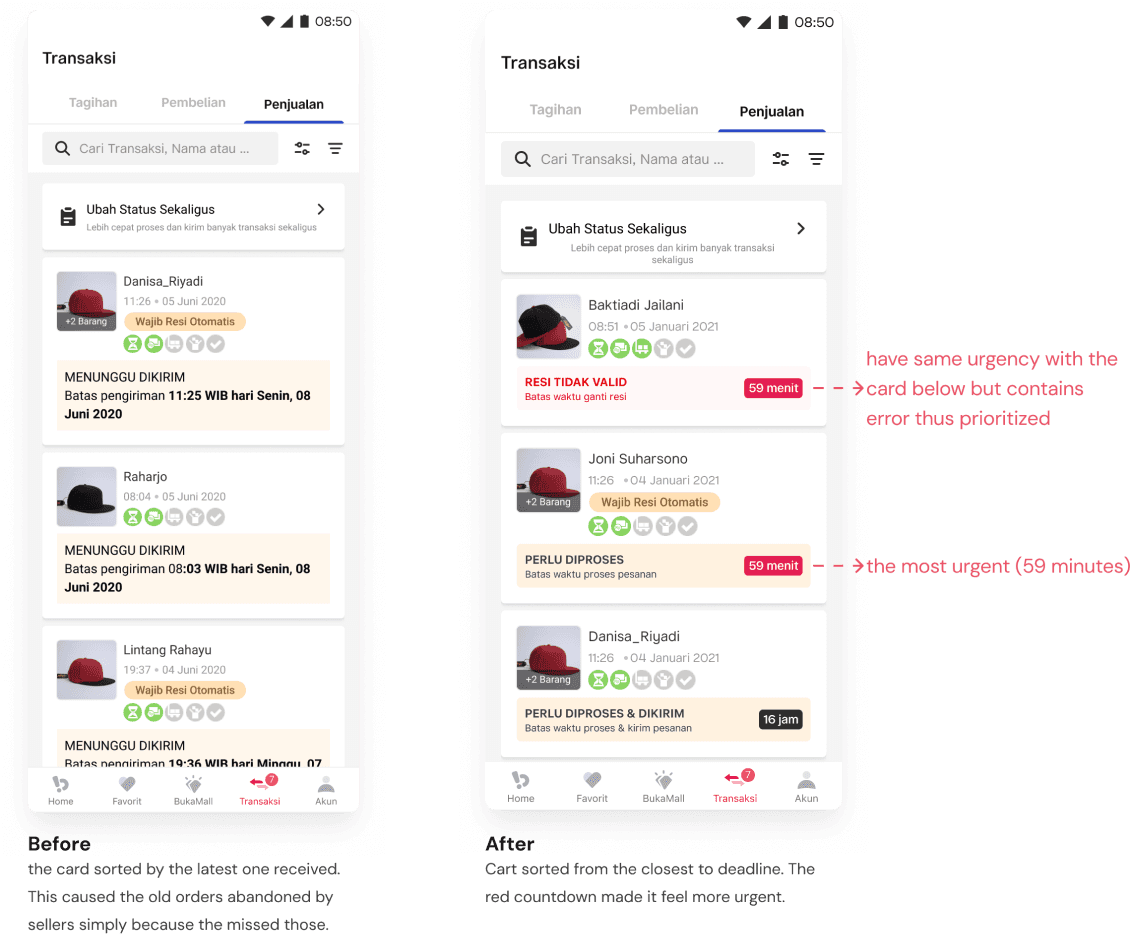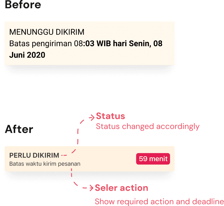 For sellers who wanted to reject the orders after accepting, we added a “Tolak pesanan” button, which previously wasn’t available.